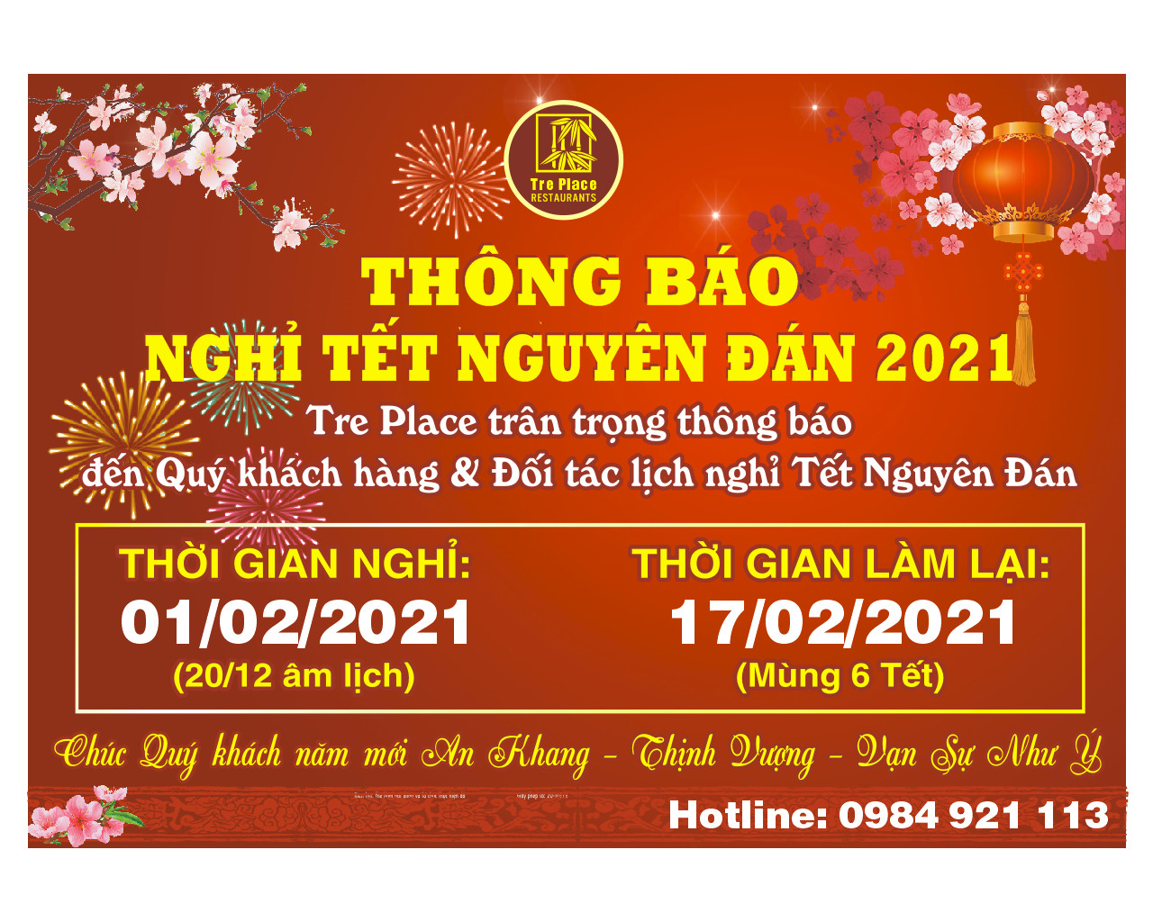 Vì tình hình dịch bệnh diễn biến phức tạp Treplace xin thông báo lịch nghỉ tết sớm hơn mọi năm.